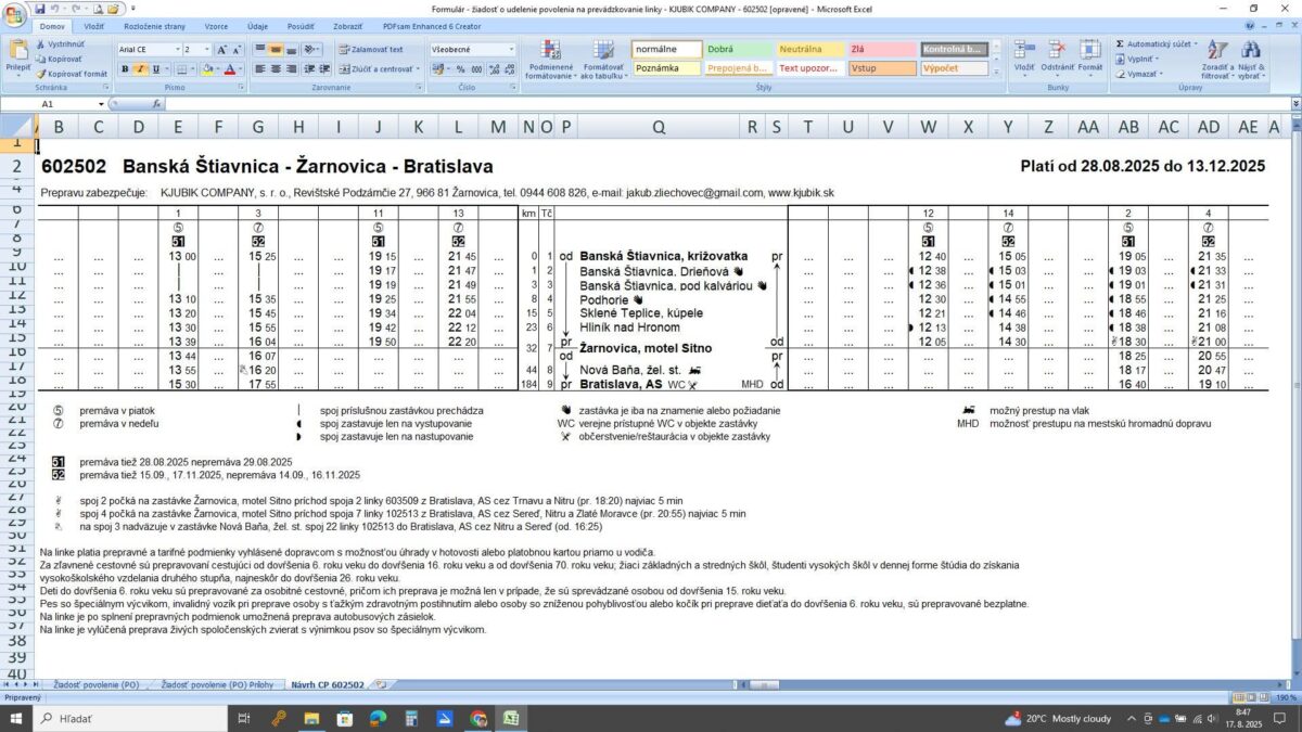 PIATOK z BS o 13.00 hod., z BA o 16:40 hod.,